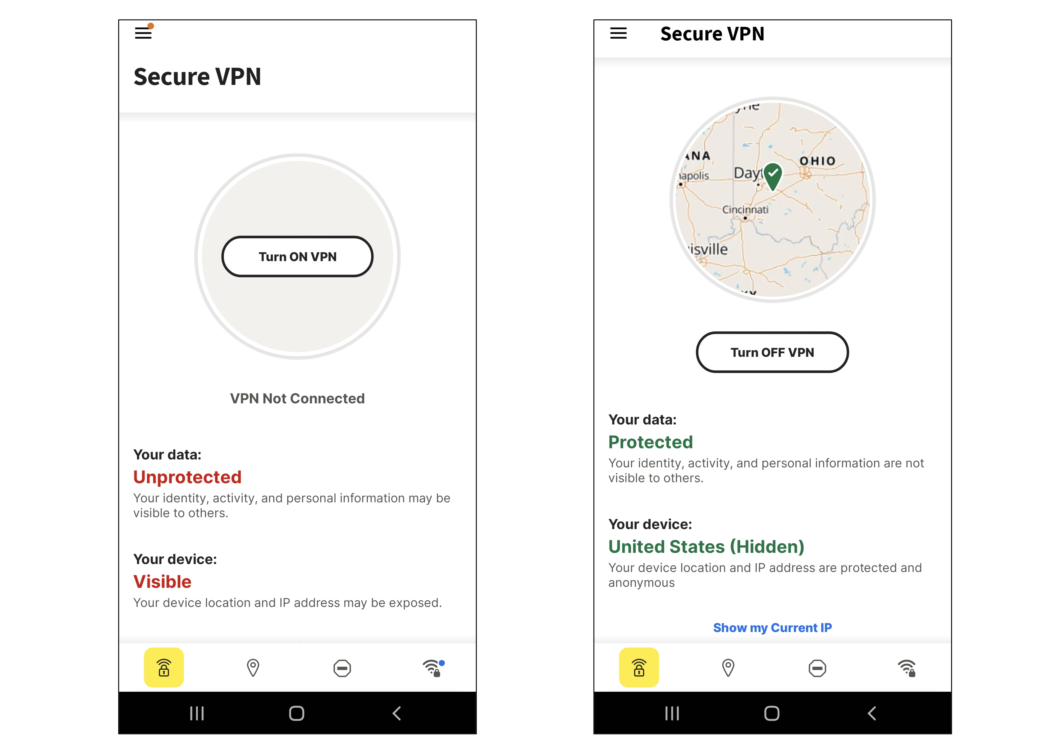 On the other hand if you’re using a trusted household or office network and there is no suspicious activity occurring, the VPN will remain disconnected.